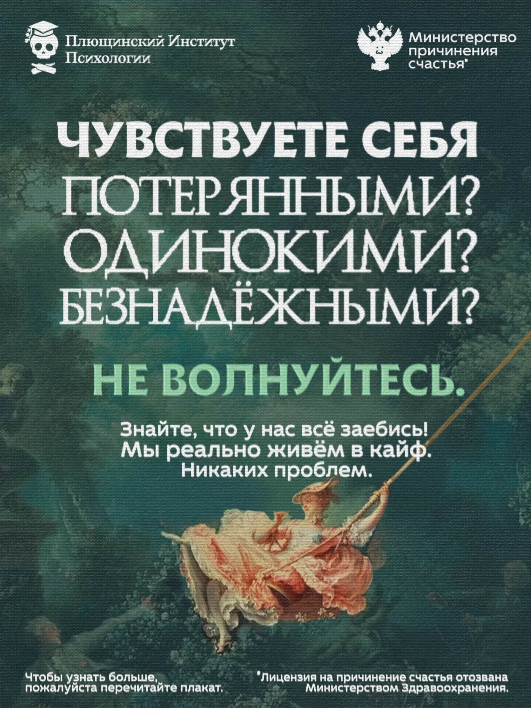 «Плющинский институт» предлагает безопасное пространство для этого внутреннего бунта: место, где можно посмеяться над системой, не отвергая знания, и где ирония становится формой саморефлексии и свободы.